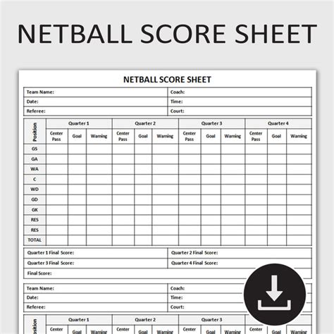 Download Link netball score sheet template Free Download PDF